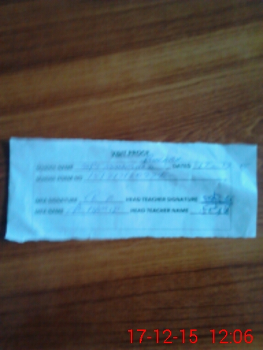 | Name: US**** YO**** Designation: (School Headmaster's/Headmistress's) ESE Phone/Cell Number: 03**** |