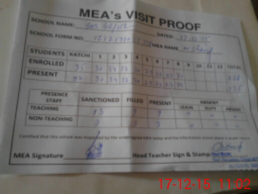 | Certified that this School was Inspected by the Undersigned MEA/DMO Today and the Information Stated Above is as Per Record. | |||||