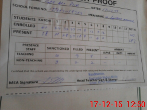 | Attendance Register | Head Teacher | MEA with School | Visit Proof |