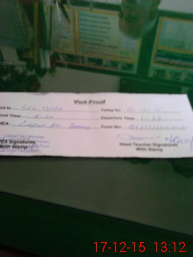 | School Visited by School Health & Nutrition Supervisor (No. of Visits) | 1 | Name1: | MUSHTAQ AHMED | Name2: | |