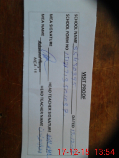 | Attendance Register | Head Teacher | MEA with School | Visit Proof |