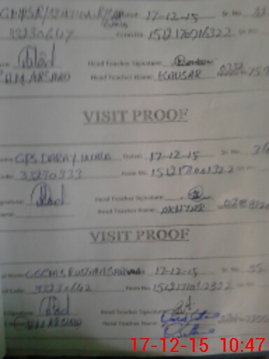 | School Visited by School Health & Nutrition Supervisor (No. of Visits) | Name1: | TAHIR EJAZ | Name2: | ||