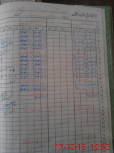 | CNIC | Full Name | Designation | R/C | Absence During Last Calender Month |