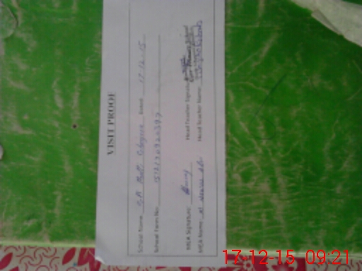 | Attendance Register | Head Teacher | MEA with School | Visit Proof |