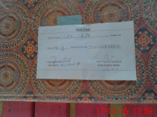 | School Visited by School Health & Nutrition Supervisor (No. of Visits) | 3 | Name1: | M Imran | Name2: | |