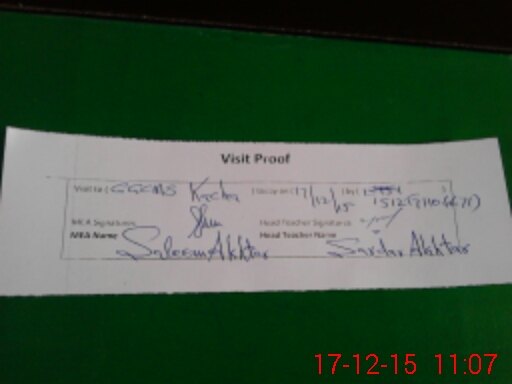 | Attendance Register | Head Teacher | MEA with School | Visit Proof |