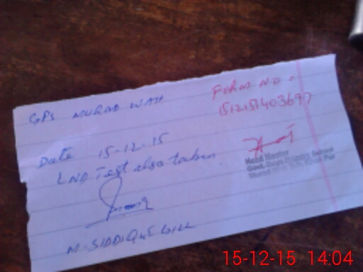 | Monitoring Date: 15-12-2015 | Start Time: 15-12-2015 01:50 PM | End Time: 15-12-2015 02:06 PM | Name of MEA: Mu**** As**** KP**** | |