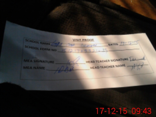 | Attendance Register | Head Teacher | MEA with School | Visit Proof |