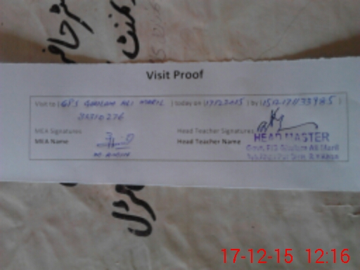 | Attendance Register | Head Teacher | MEA with School | Visit Proof |