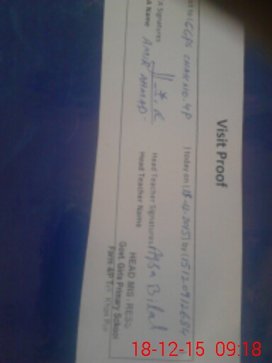 | School Visited by School Health & Nutrition Supervisor (No. of Visits) | 1 | Name1: | Samee Ullah | Name2: | Nil |
