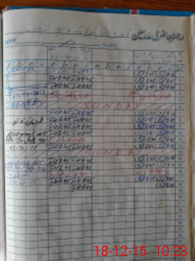 | CNIC | Full Name | Designation | R/C | Absence During Last Calender Month |