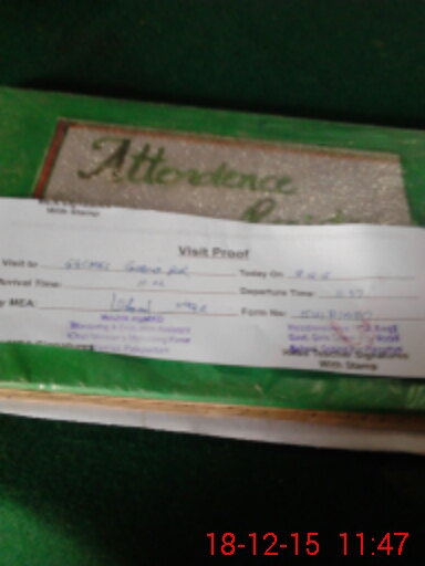 | Monitoring Date: 18-12-2015 | Start Time: 18-12-2015 11:00 AM | End Time: 18-12-2015 11:47 AM | Name of MEA: Wa**** Ah**** (R**** | |