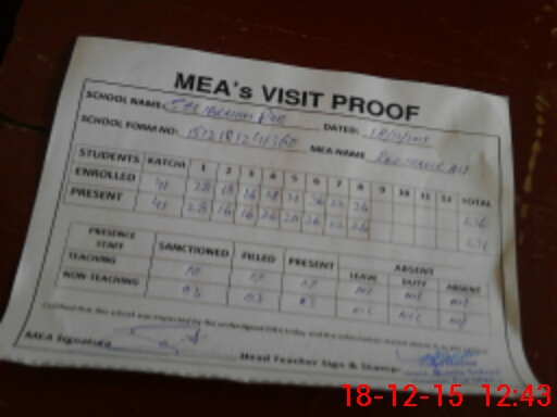 | Attendance Register | Head Teacher | MEA with School | Visit Proof |