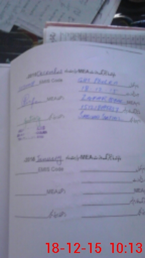 | Monitoring Date: 18-12-2015 | Start Time: 18-12-2015 09:24 AM | End Time: 18-12-2015 10:14 AM | Name of MEA: Za**** Iq**** BN**** | |