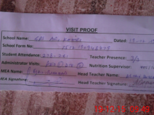 | Attendance Register | Head Teacher | MEA with School | Visit Proof |