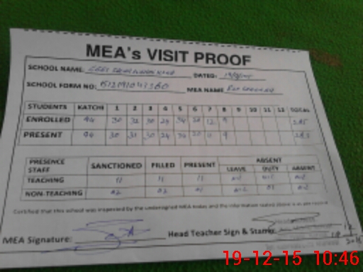 | Attendance Register | Head Teacher | MEA with School | Visit Proof |