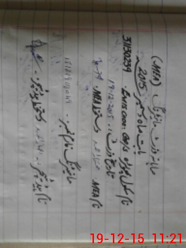 | Monitoring Date: 19-12-2015 | Start Time: 19-12-2015 11:06 AM | End Time: 19-12-2015 11:25 AM | Name of MEA: Mu**** ah**** BN**** 29 | |