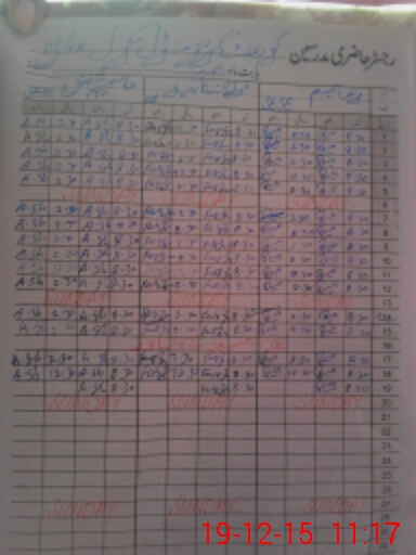 | CNIC | Full Name | Designation | R/C | Absence During Last Calender Month |