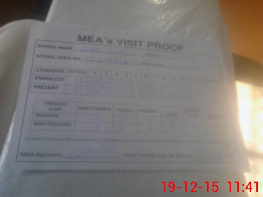| Attendance Register | Head Teacher | MEA with School | Visit Proof |