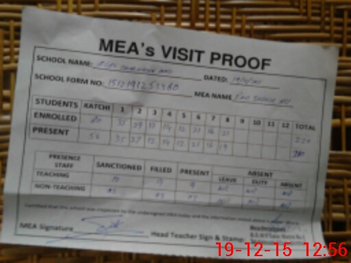 | Certified that this School was Inspected by the Undersigned MEA/DMO Today and the Information Stated Above is as Per Record. | |||||
