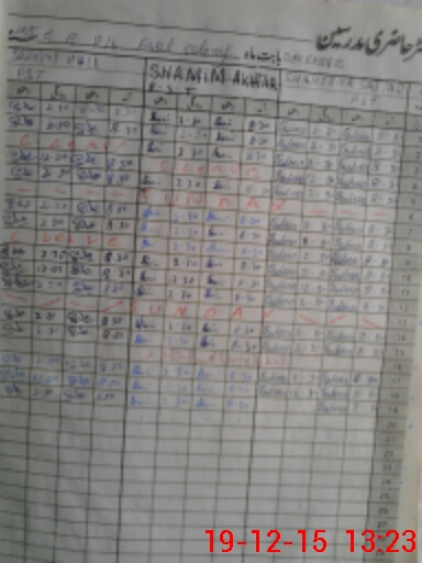 | CNIC | Full Name | Designation | R/C | Absence During Last Calender Month |