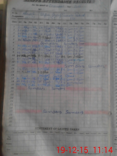 | CNIC | Full Name | Designation | R/C | Absence During Last Calender Month |