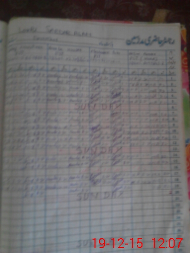 | CNIC | Full Name | Designation | R/C | Absence During Last Calender Month |