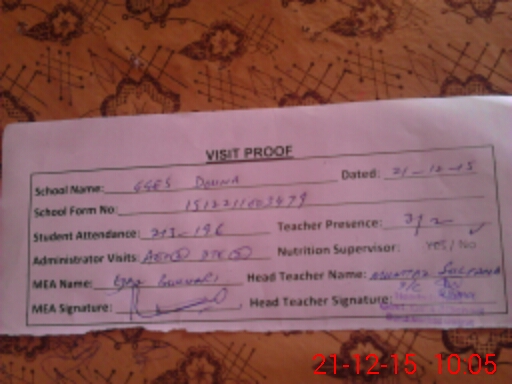 | Attendance Register | Head Teacher | MEA with School | Visit Proof |