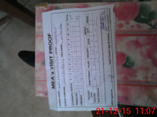 | Monitoring Date: 21-12-2015 | Start Time: 21-12-2015 10:45 AM | End Time: 21-12-2015 11:11 AM | Name of MEA: Mu**** Za**** (S**** | |