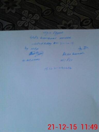 | School Visited by School Health & Nutrition Supervisor (No. of Visits) | Name1: | ASAD ABBAS | Name2: | NIL | |