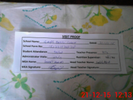 | Attendance Register | Head Teacher | MEA with School | Visit Proof |