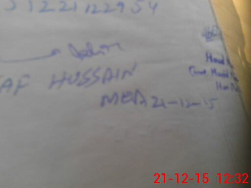 | Monitoring Date: 21-12-2015 | Start Time: 21-12-2015 12:09 PM | End Time: 21-12-2015 12:34 PM | Name of MEA: Al**** Hu**** BN**** | |