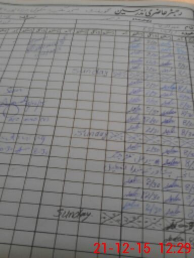 | CNIC | Full Name | Designation | R/C | Absence During Last Calender Month |