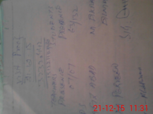 | Monitoring Date: 21-12-2015 | Start Time: 21-12-2015 11:12 AM | End Time: 21-12-2015 11:39 AM | Name of MEA: M.Ak**** Al**** | |