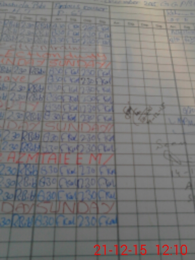 | Monitoring Date: 21-12-2015 | Start Time: 21-12-2015 11:55 AM | End Time: 21-12-2015 12:15 PM | Name of MEA: Za**** Hu**** | |
