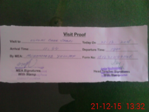 | Attendance Register | Head Teacher | MEA with School | Visit Proof |