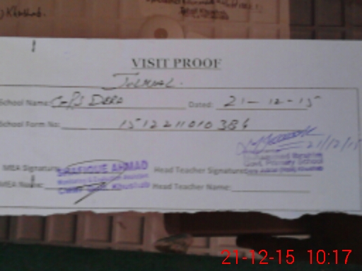 | Attendance Register | Head Teacher | MEA with School | Visit Proof |