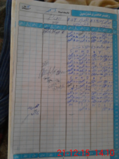 | CNIC | Full Name | Designation | R/C | Absence During Last Calender Month |