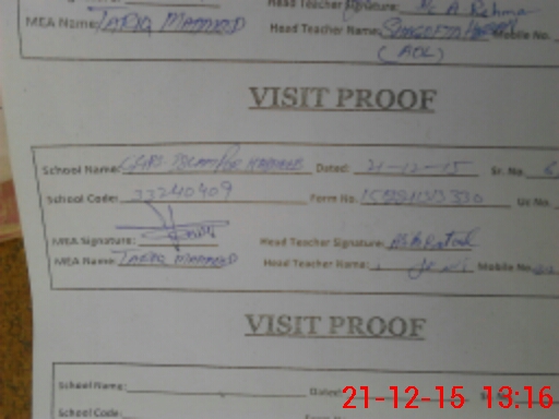 | Attendance Register | Head Teacher | MEA with School | Visit Proof |