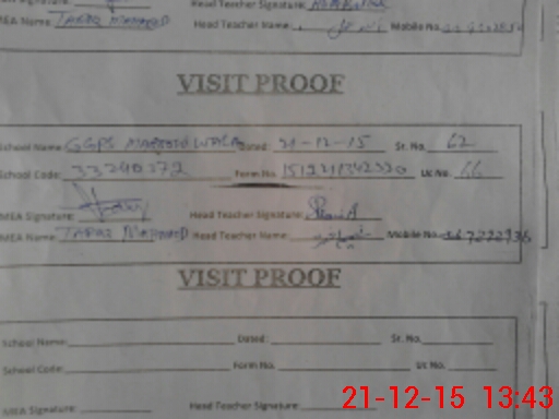| Attendance Register | Head Teacher | MEA with School | Visit Proof |