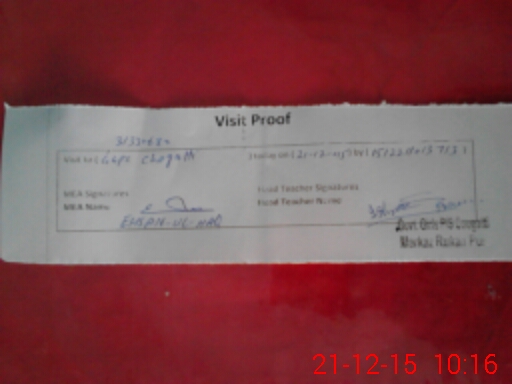 | Attendance Register | Head Teacher | MEA with School | Visit Proof |