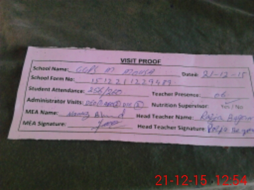 | Attendance Register | Head Teacher | MEA with School | Visit Proof |