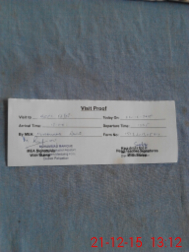 | Monitoring Date: 21-12-2015 | Start Time: 21-12-2015 01:05 PM | End Time: 21-12-2015 01:26 PM | Name of MEA: Mu**** Ra**** | |