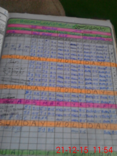 | CNIC | Full Name | Designation | R/C | Absence During Last Calender Month |