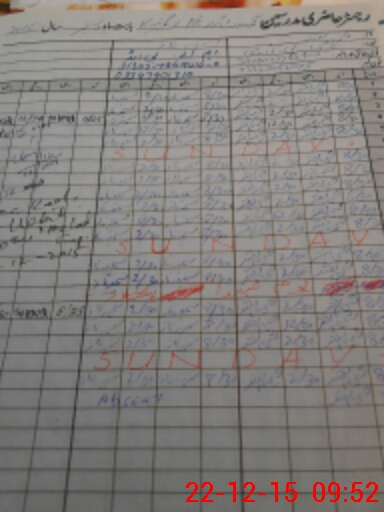 | CNIC | Full Name | Designation | R/C | Absence During Last Calender Month |