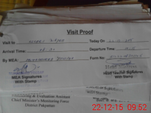 | Attendance Register | Head Teacher | MEA with School | Visit Proof |
