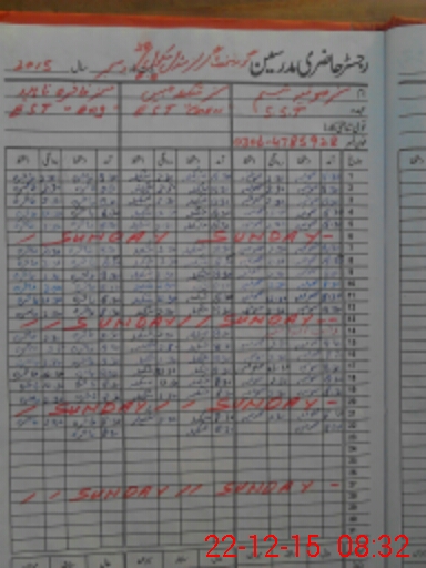 | CNIC | Full Name | Designation | R/C | Absence During Last Calender Month |
