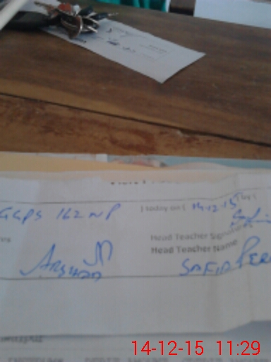 | Name: No**** Designation: (School Headmaster's/Headmistress's) ESE Phone/Cell Number: 03**** |