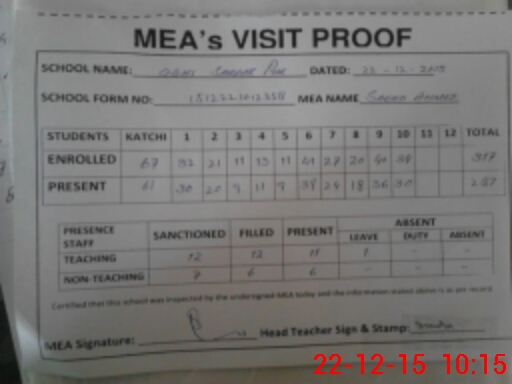 | Certified that this School was Inspected by the Undersigned MEA/DMO Today and the Information Stated Above is as Per Record. | |||||