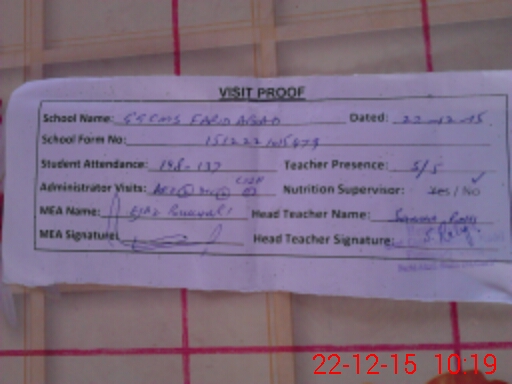 | Attendance Register | Head Teacher | MEA with School | Visit Proof |